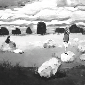 I want my paintings to reflect the age-old problems and tensions in family life, especially the hardships of being a child and pains of growing up, discovering social bonds and surviving everyday conficts with siblings. They are all black and white as a tribute to their source ( family photographs ). But also the lack of colour enables the viewer to focus their attention on the meaning of the picture and their often uncertain and very personal interpretation thereof. I use many different methods and styles of applying paint to evoke divers emotions and associations.